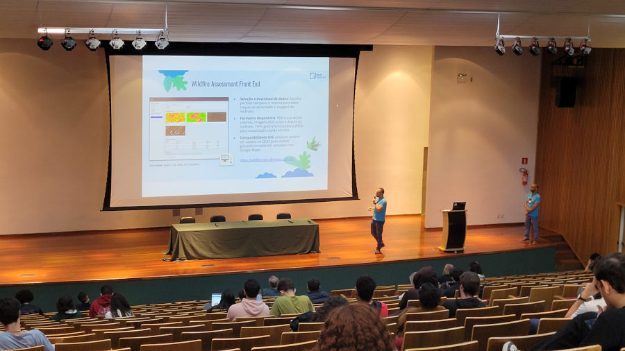 “Nosso objetivo é ampliar o acesso a tecnologias abertas que apoiem a resposta ambiental e a recuperação de ecossistemas afetados pelo fogo. A tecnologia deve ser uma ferramenta de empoderamento e não de exclusão”, destacou Marcelo Camargo durante a palestra.